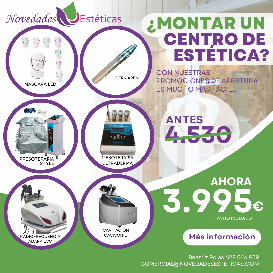Si te interesa este sector, te gusta, y sobre todo estás motivado a montar tu centro de estética, este es tu sitio. Queremos ofrecerte un pack muy económico para abrir tu nuevo negocio, con toda la aparatología básica para comenzar a trabajar. ¡No tienes excusa para dejar escapar la ocasión y montar tu centro de estética!